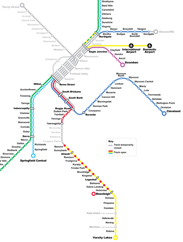 - From Cleveland, Springfield, Ipswich, and Rosewood lines: