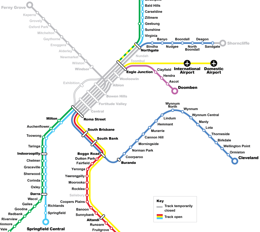 The following stations are closed for Cross River Rail construction works and accessibility upgrades.